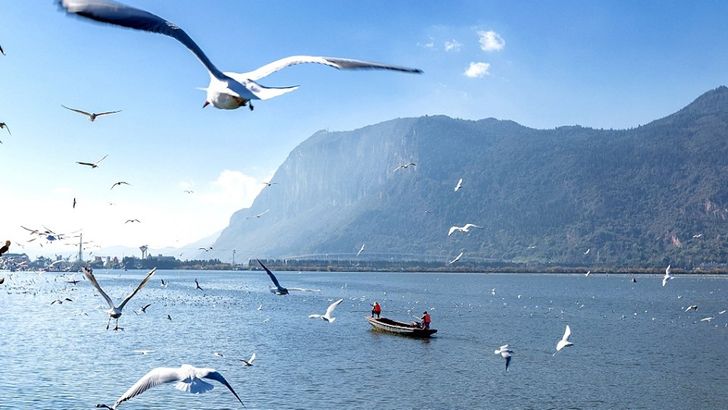 จากนั้น นำท่านเยี่ยมชม ทะเลสาบเตียนฉือ ที่เป็นทะเลสาบน้ำจืดขนาดใหญ่ที่สุดในมณฑลยูนนาน มีพื้นที่ประมาณ 300 ตารางกิโลเมตร ล้อมรอบด้วยทิวทัศน์ภูเขาอันสวยงาม ทะเลสาบแห่งนี้มีชื่อเสียงว่าเป็น "ไข่มุกแห่งที่ราบสูง" เนื่องจากความงดงามที่สะท้อนแสงแดดในช่วงเช้าและเย็น